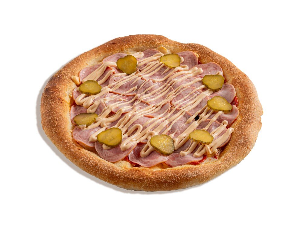 Пицца Бургер — это аппетитная пицца с сочным сочетанием ветчины, маринованных огурчиков и красного лука, покрытых слоем моцареллы и чеддера. За неповторимый вкус отвечает специальный соус Бургер, который дополняет традиционный пицца соус.